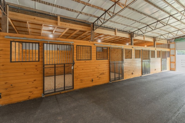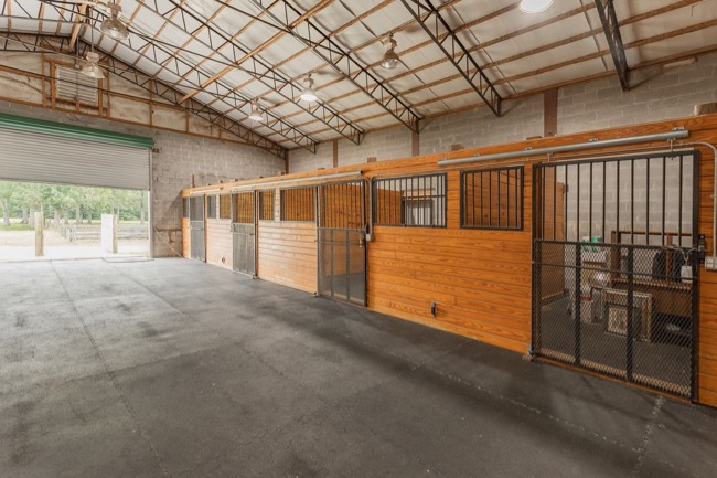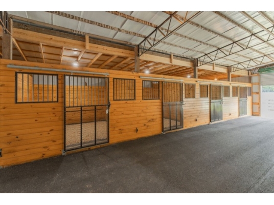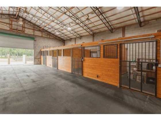 Many Potential Uses – Commercial or Light Industrial, Excellent “Barndominium” Project, 17 Stalls with Tongue & Groove Paneling, and Custom Welded Doors, 7,296± SF Concrete Block Building with Wings, Office, Restroom, Lab Room & Wash Bay, Potential 16’ x 48’ Upstairs Apartment, 96’ x 16’ Lean-to, Horseshoe Driveway Provides Easy Access, Creek Running through the Property, Well & County Water and Underground Utilities, Partially Fenced Field, and 2 Large Paddocks and 2 Small Paddocks.