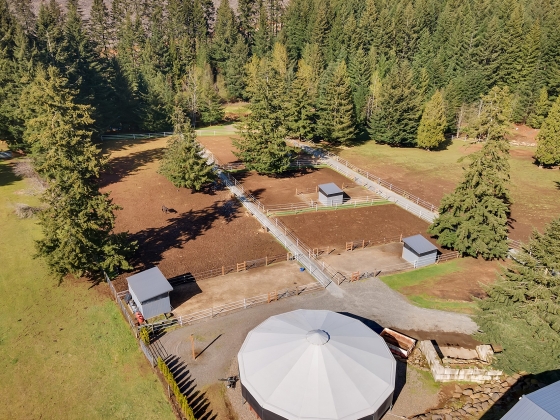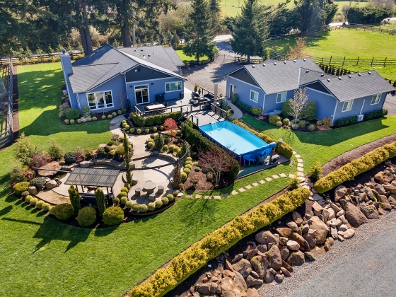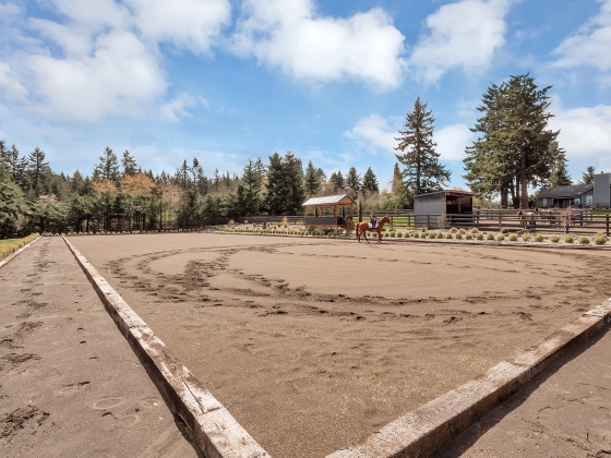 Enter the gates and start enjoying all this 14+/- acre turnkey equestrian estate has to offer! Proficiently fenced and cross-fenced turnouts with direct access to three thousand acres of riding trails with no motorized vehicles allowed. Remodeled and comfortable single-level living 4 bed,2.1 bath 2,625sqft with upscale amenities throughout. The cooks kitchen boasts 6 burner gas stovetop, walk-in pantry, barstool island seating and corner sink wall of windows. Cozy up in the living room with the floor to ceiling masonry fireplace under the vaulted exposed beams. Main level en-suite with French doors, walk-in closet and direct access to private backyard hot-tub. Generously sized light and bright three additional bedrooms plus laundry room. Abundant outdoor entertaining with surround sound, dance floor, outdoor movie theater, BBQ grill, bar sink, firepit and above ground pool to enjoy all that Oregon summers have to offer. Large detached 3 car garage plus full gym with heating/cooling and automatic door. Office headquarters to service any home based business needs. In place, long established and successful horse boarding operations with 15 stalls in main stable plus 15 full-time individual run-in shelters. Individual tack lockers, heated Nelson waterers, grooming bays and wash racks, restroom, kitchenette lounge and viewing room overlooking the 70x204 indoor arena equipped with sprinkler system. Expansive 100X200 outdoor arena complete with judge’s stand for an ideal clinic venue plus covered training round-pen. Two additional buildings for ample hay storage as well as five bay toy shop with fully insolated finish walls, bathroom, washer/dryer hook ups and storage room for all your equipment and tinkering needs. An all in one property to provide not just a home, but business solution and support your passion for the four-legged family members.