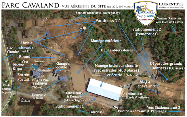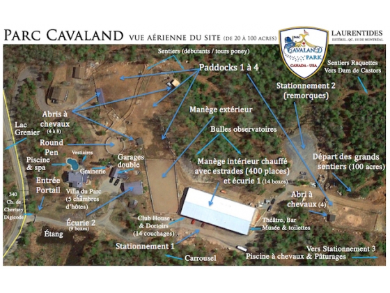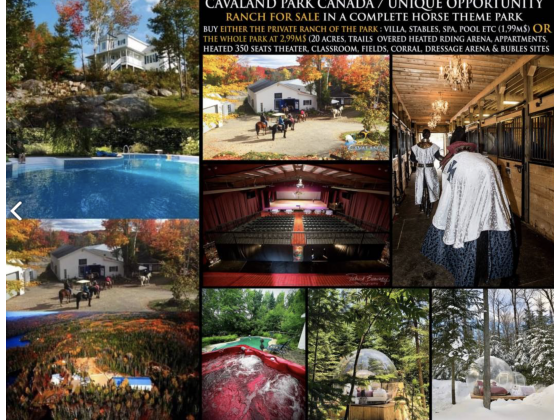 you buy it and live in the ranch lot, for a fraction of the price, as co-owners 50/50%, with a cash deposit required (1,4 M$ on the ranch lot only). You live on your private ranch lot full time, you enjoy it with your horses, customers, guests, your income or guest house or boarding, and animals; you also enjoy access to the full park facilities (notary act). We keep 50% of the title for 3 years, and we pay half the taxes (under conditions). You can buy the totality of the ranch lot at any moment (to complete the fixed price of 1,99M$ before 3 years), or at 800K$ more, after 3 years (+5%/year aditionnal for inflation rates). We can also stay co owners for decades, because we LOVE our horse park and we already have the clubhouse to stay when we come in the summer season for horse show.