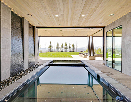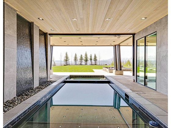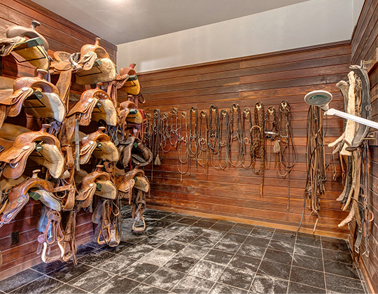 Outside, this legacy property boasts all-weather amenities including a heated pool with a built-in hot tub, peaceful water features, sun-filled terraces, a fire pit, and easy access to the adjacent trail system. Wildlife frequently passes through the property, often stopping for a drink at the trout-filled pond, which comes complete with water features, a private dock, zip line, and slide. The wow factor doesn’t stop there. In fact, it’s been saved for the spectacular barn and indoor riding arena, which boasts over 24,000 square feet and features 16 stalls made with Brazilian hardwood, hay and bedding storage, saddling areas, a large tack room, radiant heat, automatic doors, and an amazing 2,000-square-foot caretaker’s cottage. No detail was overlooked when planning this horse haven!
