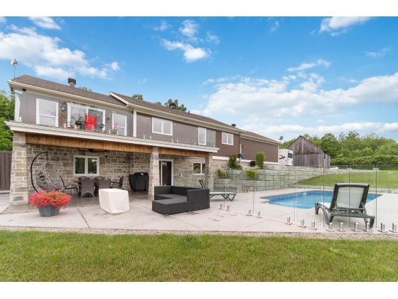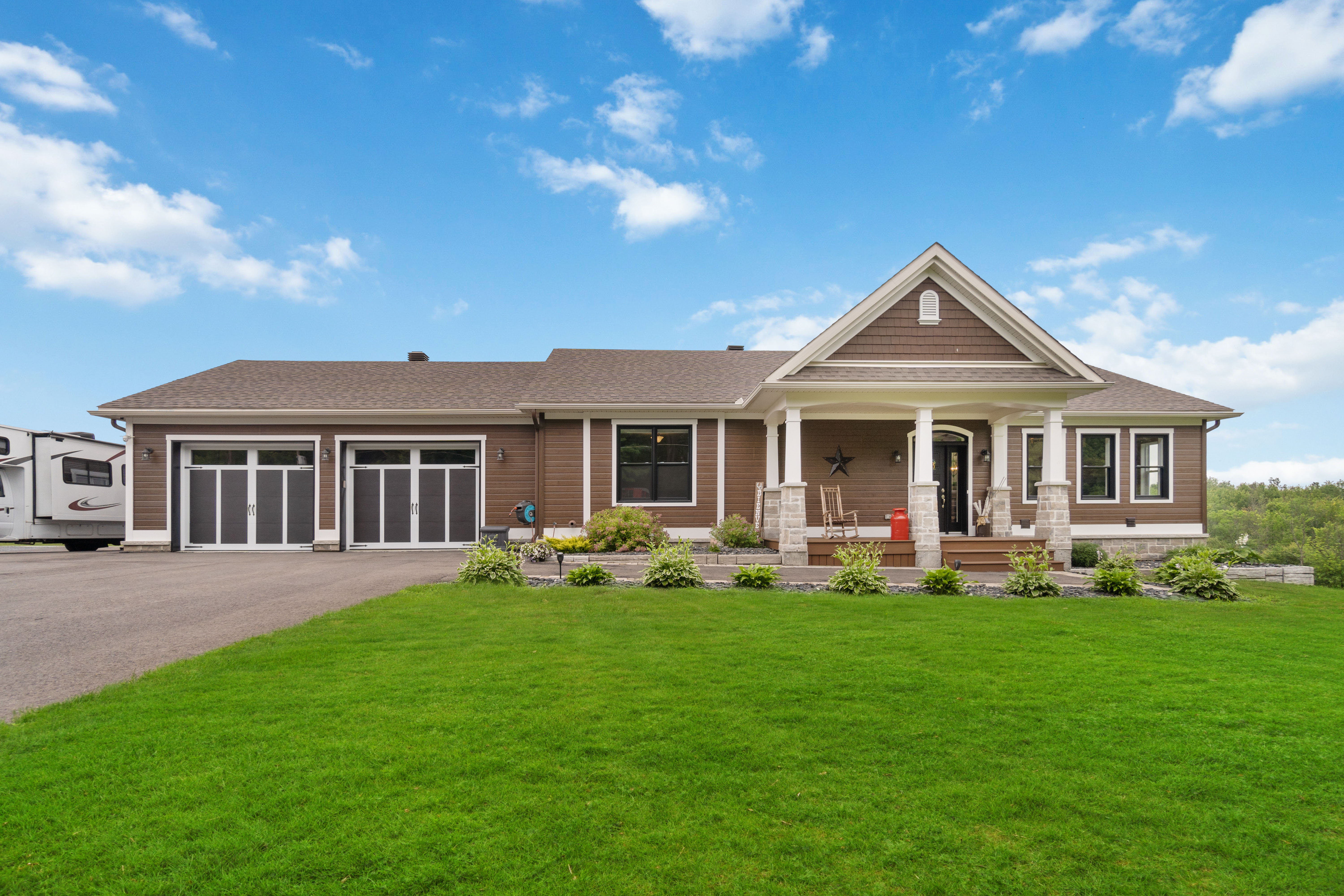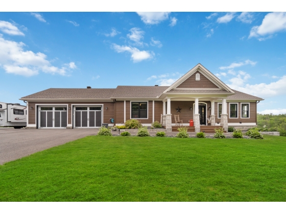 Step into a realm of elegance & tranquility at Lac Georges in picturesque Prescott Russell east of Ottawa. This stunning hobby-farm combines luxury, comfort, & the beauty of nature. Large 4 BR bungalow(2019-built) w/lower lvl walk-out. Approx. 3,000sqft. 2 car garage w/staircase to lower lvl. Bright, open concept main lvl w/ gas FP, wide plank flooring, vaulted ceiling w/ wooden beams. Chef's kitchen w/quartz counter tops, gas stove, walk-in pantry & centre island. DR leads to balcony offering views of fields & treetops. Heated, inground salt water pool w/glass enclosure. Generac generator offering peace of mind. 54 acres. Horse stable(2008-built), fenced yard, the stable's 2nd floor offers living quarters w/ 2 full bedrooms, washroom & living area. Enjoy activities on cleared trails incl. hiking, snowshoeing, horseback riding, ATV. Lake w/river access offers fishing, boating & jet skiing. High quality chicken coop can provide fresh eggs from your own flock. Don't miss the video!