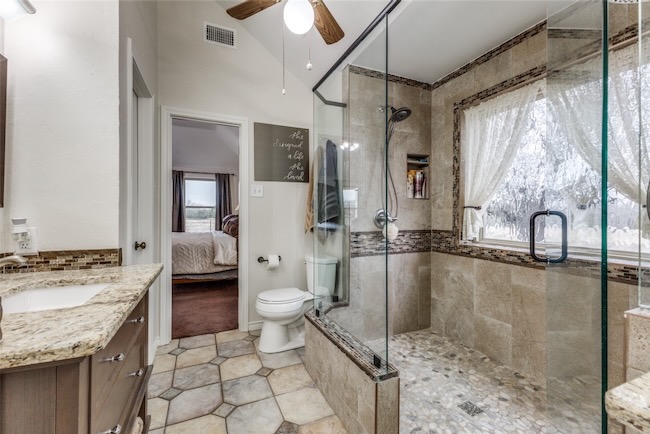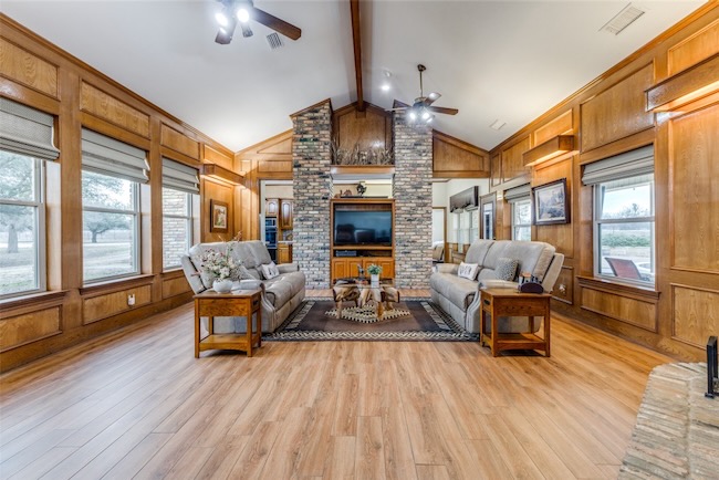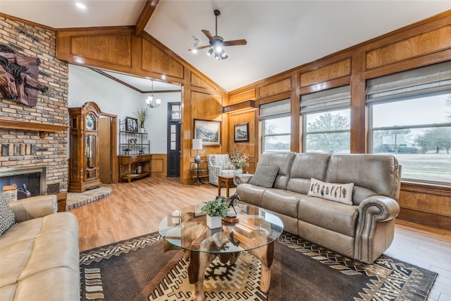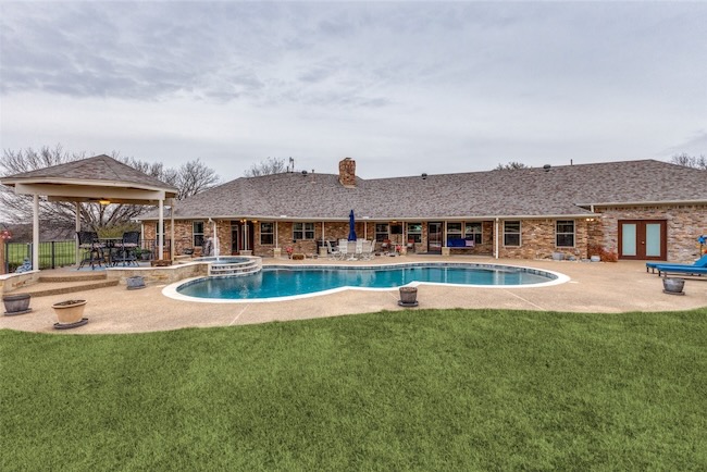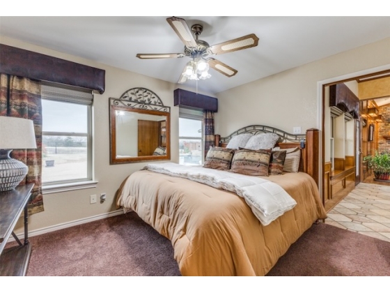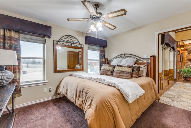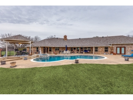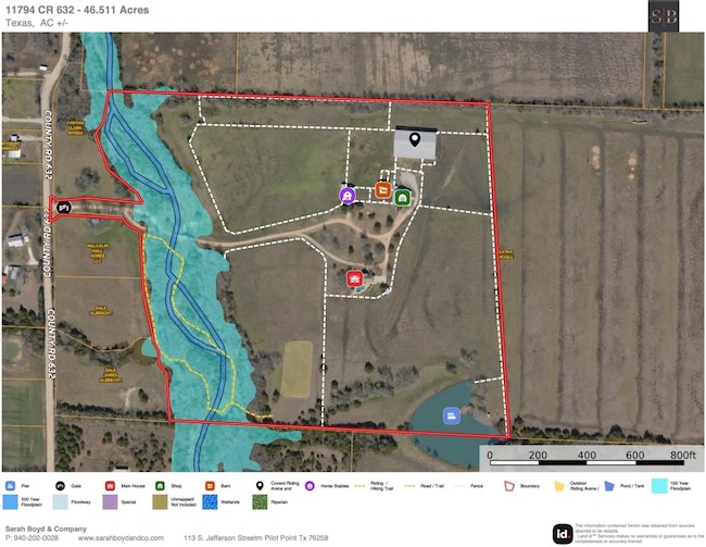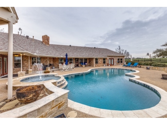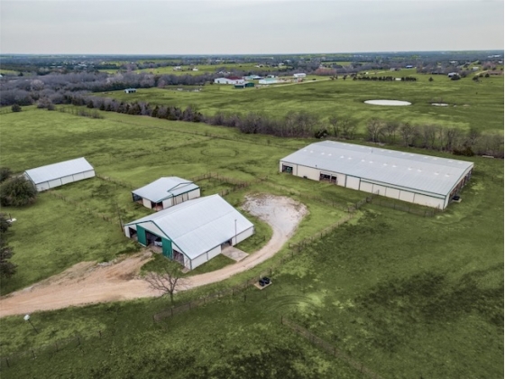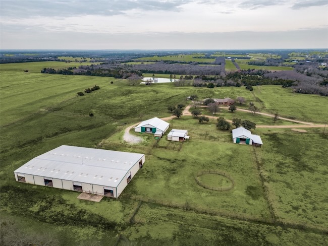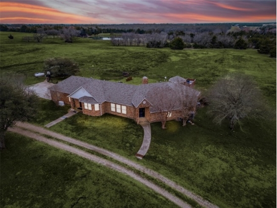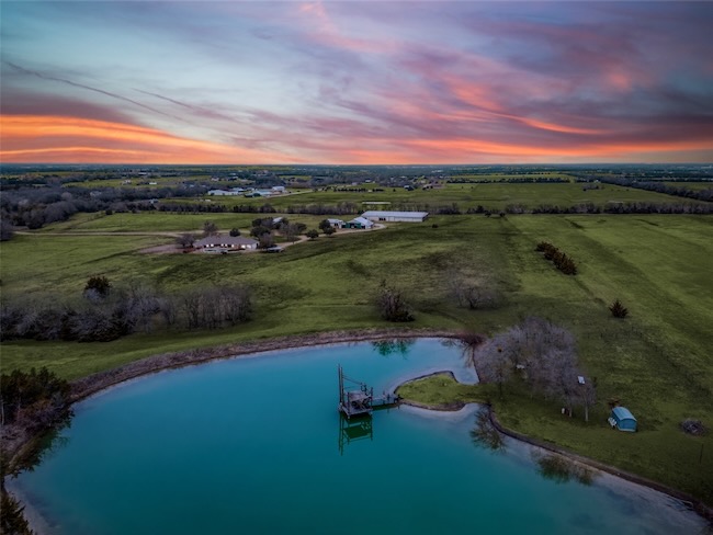 Embrace the ultimate ranch lifestyle on this sprawling 46+ acres in Blue Ridge, TX! This completely private custom-built brick home features four bedrooms, three full baths, and expansive views that showcase stunning sunsets and sunrises. Inside, enjoy a large living room with wooden paneling and a cozy fireplace, along with an expansive kitchen and dining area. Spacious primary suite boasts an en-suite bath with a walk-in shower. For equestrian enthusiasts, a covered riding arena with roll-up and side doors, eight stalls, an observation deck, and wash racks awaits. A large office with AC and an efficiency apartment adds convenience. Outdoor living is exceptional, complete with a refreshing pool, spa with a water feature, gazebo, and open patio for relaxing while enjoying beautiful views. Recent updates include a new roof, doors, and windows. This ranch also has cross fencing, stocked pond, a two-story dock with a fishing pier, a garage with RV hookup, private on property trails and additional barns for endless possibilities. Live your dream lifestyle in this beautiful ranch haven!