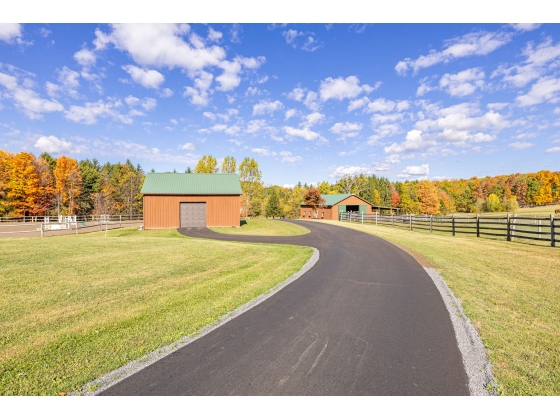 Luxury estate nestled on 35 private acres located less than 10 mins from the north end of Canandaigua Lake, this remarkable property offers the best of both worlds- peaceful seclusion surrounded by nature, with convenient access to all the Finger Lakes region has to offer. Enjoy boating, waterfront dining, shopping & award-winning wineries just minutes away. Outdoor enthusiasts will love being a short drive to Bristol Ski Resort & its only 40min to Rochester! Extensively remodeled with exceptional attention to detail, the home combines modern sophistication with timeless comfort. The designer kitchen features a massive island, high-end appliances, quartz countertops, radiant heated floors, custom cabinetry & oversized windows that fill the space with natural light. A double-sided masonry heater with a wood fired pizza oven combines the dining & living room. While the cozy family room features a stone fireplace. Upstairs, there are multiple bedrooms & bathrooms including a primary suite with a walk-in closet. Also, the finished attic with its own full bathroom offers flexible space. An add. 1,000sqft of finished basement space expands your living space. Private in-law suite with a completely separate entrance, kitchen, bath, ideal for a possible rental or guests. The land has a stunning mix of mature woods & rolling terrain with private trails that wind through the landscape. A picturesque creek, diverse elevation changes, & abundant wildlife make this property perfect for hunting, horseback riding, hiking & four-wheeling. Whether exploring your own wooded trails, fishing in the stocked pond, or relaxing on the deck, every part of this property invites you to slow down & enjoy the beauty of nature in total privacy. For horse enthusiasts, it includes a beautiful 6-stall barn with walkouts to fenced pastures & an outdoor riding arena with excellent footing. A second barn provides ample storage space. This exceptional estate represents a rare opportunity to own luxury, acreage & serenity in one of NY's most sought-after regions. Whether as a full-time residence, a possible new income generating endeavor, hunting retreat or equestrian haven, it's a must see in person!
