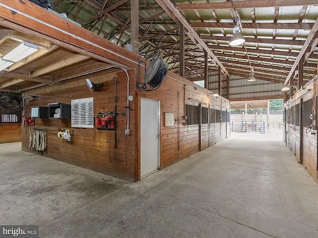 Set on 25 picturesque acres with a meandering creek, this world-class equestrian estate offers an unparalleled blend of professional horse facilities and refined country livingโall within an easy drive of Washington D.C., Baltimore, and Northern Virginia. Designed with precision, care, and comfort in mind, the property is turnkey for the serious equestrian, trainer, or discerning private owner. At the heart of the farm are two exceptional barns, totaling 45 stalls, thoughtfully designed for safety, convenience, and efficiency. The main barn boasts 29 matted stalls across two wide 12-foot aisles, each equipped with its own fan, light, and timed outlet. Amenities include a climate-controlled lounge, two spacious tack rooms, a wash stall, an insulated laundry room, a utility room, and a massive loft with guest accommodations. Dedicated farrier lighting and ample tractor clearance make daily operations effortless. Just steps away are an indoor arena, a large shavings shed, an additional 7 stalls, and a hay storage container that keeps dust to a minimum. The second barn offers 9 matted stalls, a charming guest room, a full bath, and a two-bedroom suite ideal for visiting riders or staff. A vehicle lift in the barn provides space for on-site equipment maintenance. For the rider, the property features a large indoor arena with sand footing and lighting, powered by a leased solar panel array with five inverters in the attached workshop. Outdoor training spaces include a 175โ x 275โ arena with new footing, a 48-foot covered round pen, and a 4-horse ProWalk hot walker. Pastures are immaculately maintained, enclosed by safe wood fencing, and laid out for ease of rotation and turnout. Additional accommodations include a caretakerโs cottage and barn apartment, both updated for comfort and practicality. The four-bedroom main residence blends casual elegance with warmth, featuring hardwood floors, two gas fireplaces, a great room with brick-surround fireplace, cathedral ceilings, and skylights, a formal dining room with built-ins, crown molding, and designer lighting, and a main-level primary suite with the flexibility to expand. The updated kitchen with island and stainless steel appliances, granite counters, opens to light-filled living spaces, and the unfinished basement with rough-in offers room to grow. The upper level provides three spacious bedrooms, one with an en-suite bath with a soaking jetted tub, a walk-in shower, and a walk-in closet. Outdoor living is elevated by a newly remodeled heated inground pool with fountains, new tile and plaster, a sun deck, and a covered patio surrounded by lush perennial gardens. Additional amenities include a Two-car attached garage with EV charger, an RV garage with 16-foot ceilings, 14-foot doors, and 100-amp service, designed for Class A RVs, large living quarter horse trailers, or future conversion to a gym, basketball court, breeding facility, or stallion station. Every detail of this estate, from the safe fencing to the solar power, from the manicured arenas to the luxurious living quarters, has been crafted for the ease of care and enjoyment of horse and rider alike. With proximity to top equine veterinary hospitals and premier showgrounds, this is a rare opportunity to own one of Montgomery Countyโs finest equestrian properties. Shown by private appointment only.