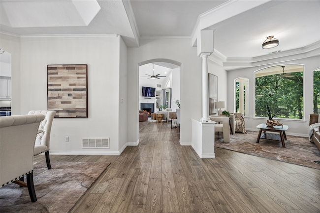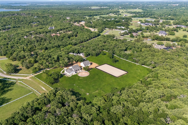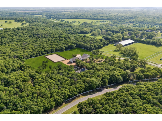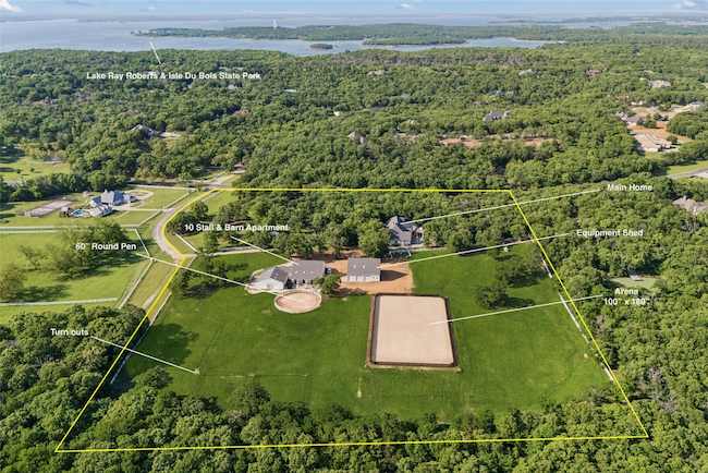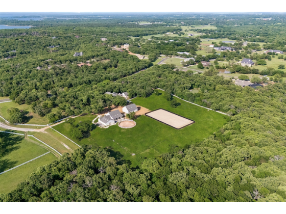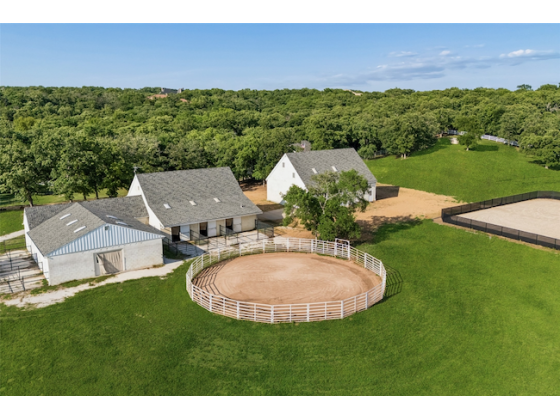 Private Equestrian Retreat in Butterfield Junction on 10 Acres. Tucked among mature trees in the sought-after Butterfield Junction community, adjacent to Isle du Bois Park, this exceptional equestrian property offers a rare balance of privacy and access to the natural beauty of Lake Ray Roberts. The custom residence is thoughtfully positioned to capture peaceful, tree-lined views and features three bedrooms, two full baths, and two half baths. Warm, inviting living spaces are designed for both everyday comfort and effortless entertaining. A guest suite or mother-in-law quarters--connected by a covered breezeway--adds flexibility, while the spacious three-car garage enhances functionality. Designed with the equestrian in mind, the property is anchored by a well-appointed 10-stall barn with attached runs, Classic Equine automatic waterers, wash rack, groom stall, tack room, feed room, laundry, med room and a dedicated barn office with private bath. A separate one-bedroom, one-bath apartment offers comfortable living quarters for guests, staff, or a trainer. The professionally built arena (100' x 180') with Kiser-designed drainage and footing provides a versatile and consistent riding experience. Additional improvements include a 60-foot round pen, seven no-climb turnouts with loafing shed, multiple pastures, and private on property riding trails. An equipment barn allows for convenient storage of equipment, hay and bulk shavings and includes workshop area. The property offers two gated entrances--separate for residence and barn--ensure both privacy and operational efficiency. Property offers two generators to power home and barn. Ideally located just minutes from the trails of Isle du Bois Park and the shoreline of Lake Ray Roberts, this is a rare opportunity to own a refined equestrian property in one of North Texas' most desirable settings. Ag exemption currently in place offering lower property taxes.
